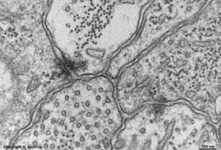| 1 cone- & 4 rod terminals | stereo animation of a rod ribbon synapse | ribbon synapses and postsynaptic processes of a cone |