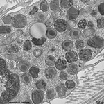 show mainly vesicles with scroll-like content and osmiophilic lipid