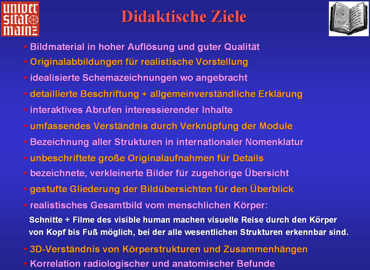 Ziel hat, qualitativ hochwertiges anatomisches Bildmaterial auf diesem